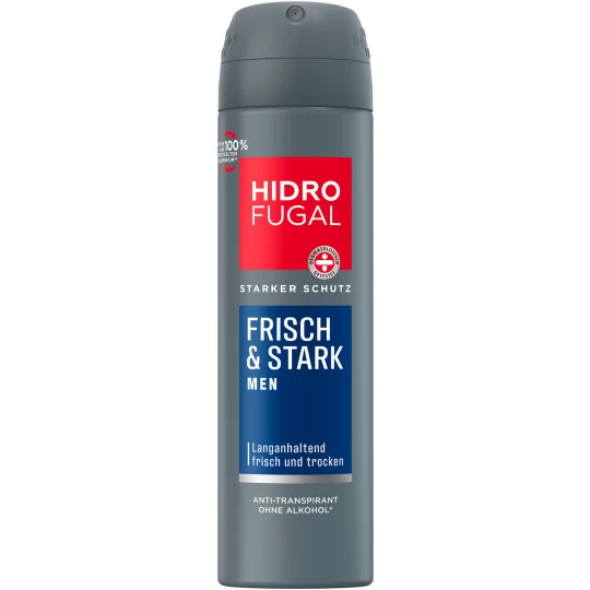 Zuverlässiger Anti-Transpirant Deo Schutz für Männer: Das HIDROFUGAL MEN FRISCH & STARK Spray überzeugt mit seiner Kombination aus starkem Schutz und erfrischendem Duft. Das Anti-Transpirant speziell für Männer ist ohne Ethylalkohol und wirkt zuverlässig gegen unangenehmen Körpergeruch und Achselnässe. Gleichzeitig sorgt das HIDROFUGAL MEN FRISCH & STARK Spray mit seinem besonderen maskulinen frischen Duft bei jeder Anwendung für ein langanhaltend frisches Hautgefühl. Einfach in der Anwendung und hochwirksam in der Formel, um ein frisches Gefühl unter den Achseln den ganzen Tag genießen zu können. Nach dem Auftragen trocknen lassen. Nicht auf gereizter oder geschädigter Haut anwenden. Die Hautverträglichkeit ist dermatologisch bestätigt.