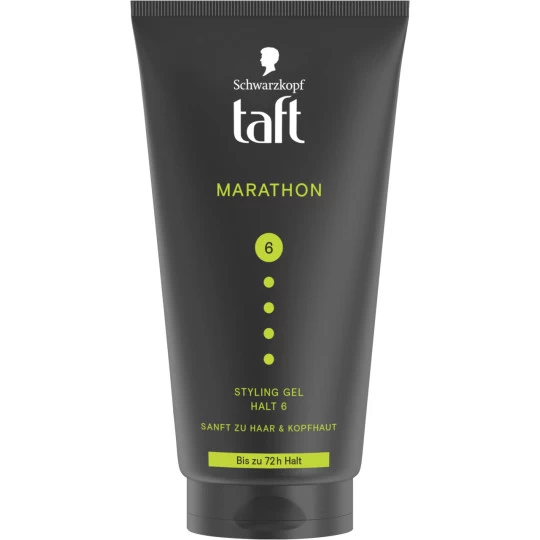 - TAFT Marathon Gel – Das TAFT Haarstyling-Gel verfügt über Extrem-Ausdauer-Polymere, für energiegeladene Frisuren mit einem Halt von bis zu 72 Stunden.