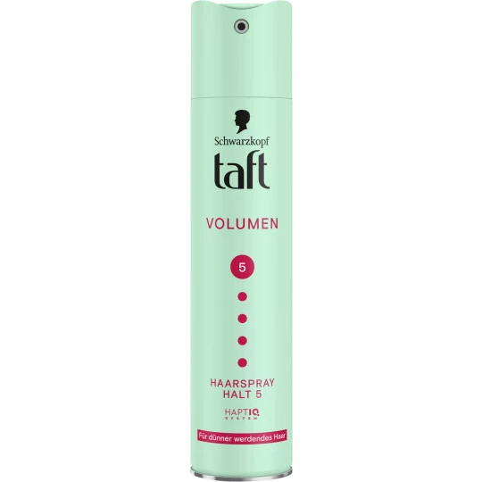 - Taft Volumen Haarspray – Dieses Taft Haarspray verleiht Volumen und einen natürlichen Haarschwung, es eignet sich für feines und dünner werdendes Haar.